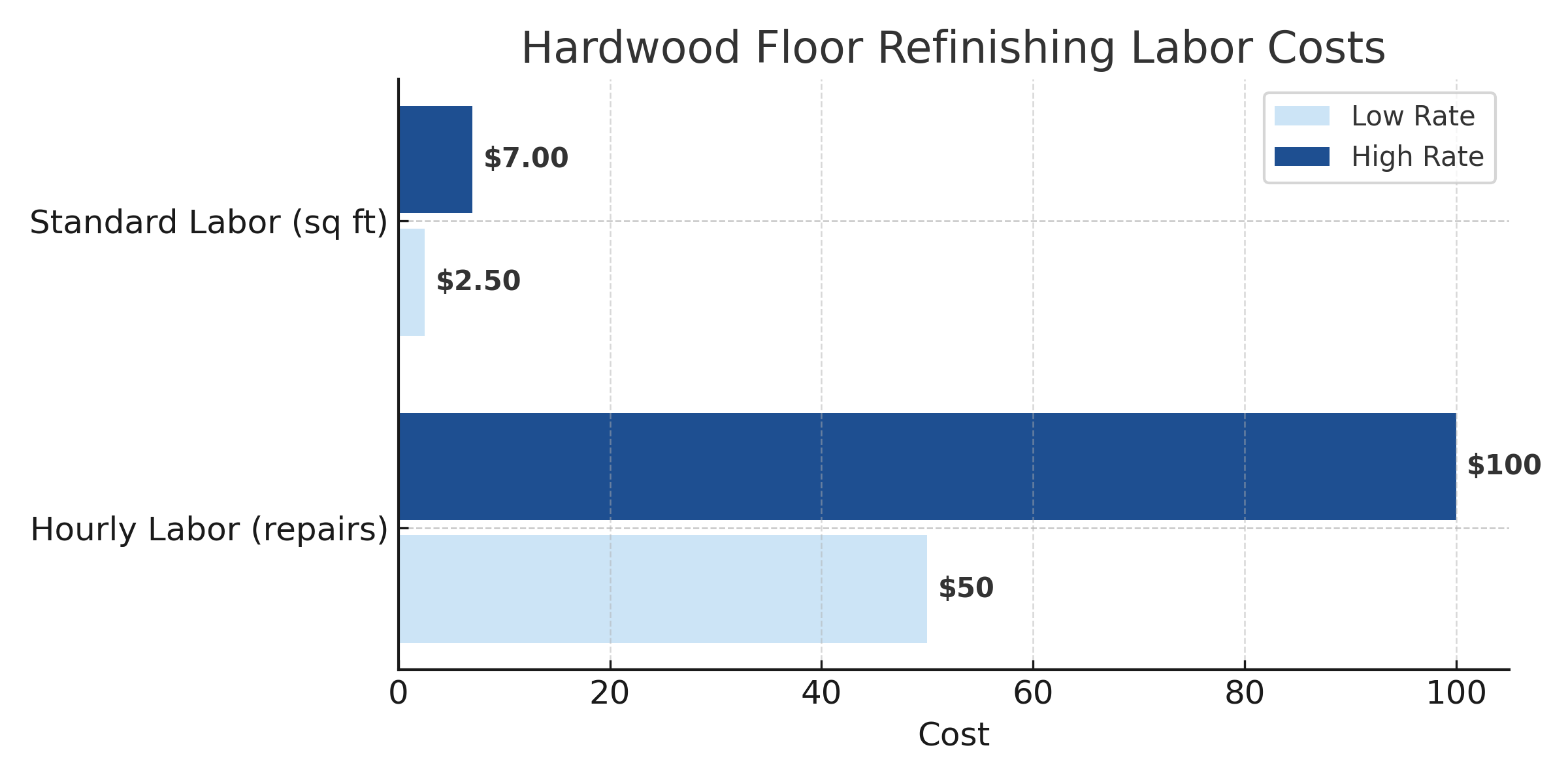 Standard Labor Rate (per sq ft)$2.50 – $7.00